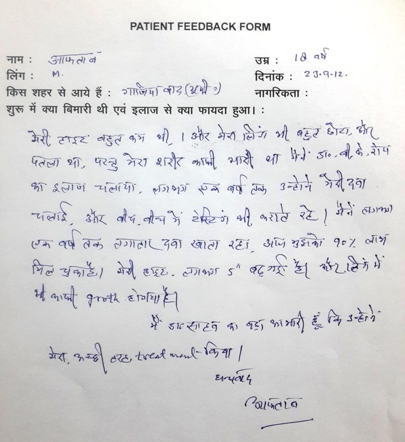 Detailed History: First we take detail history about diet, past illness & other relevant history to reach on probable cause for shortness of height.